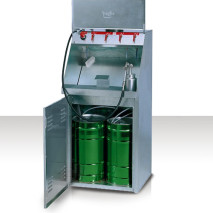 U mašinu se smešta jedan puni kanister sa odgovarajućim sredstvom za pranje opreme i drugi – prazni kanister u kome se sakuplja zaprljani razređivač.