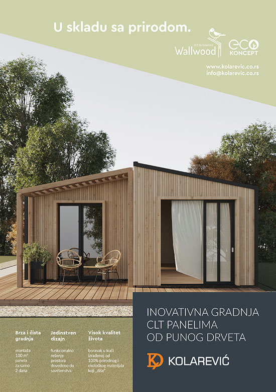 Na 46. Međunarodnom sajmu građevinarstva „SEEBBE“ koji je, nakon dve godine, održan krajem aprila na Beogradskom sajmu, sajamskim priznanjem NOVA VIZURA u kategoriji PREFABRIKOVANI SKLOPOVI ZA GRAĐENJE, nagrađena je kompanija KOLAREVIĆ iz Pojata, firma koja je na sajmu izložila CLT montažnu kuću, po sistemu ključ u ruke. O sajamskom nastupu ove kompanije, o izloženoj CLT montažnoj drvenoj kući i interesovanju posetilaca, razgovarali smo sa Danijelim Kolarević Gilić, inače kćerkom vlasnika kompanije KOLAREVIĆ, gospodina Dušana Kolarevića.