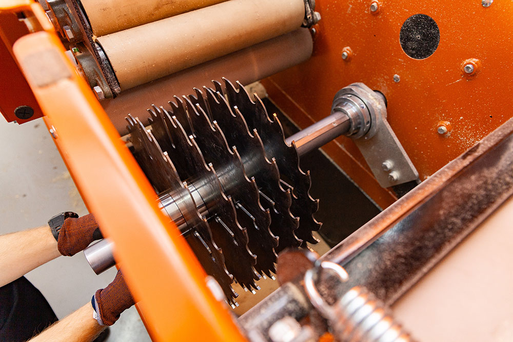 Mašina je opremljena prstima protiv povratnog trzaja, koji štite operatere od letećih iverica. Oni se mogu ukloniti pomoću poluga sa strane. Za održavanje, gornji poklopac se otvara teleskopskom ručkom i ima električnu blokadu koja sprečava slučajno pokretanje mašine dok je poklopac otvoren.