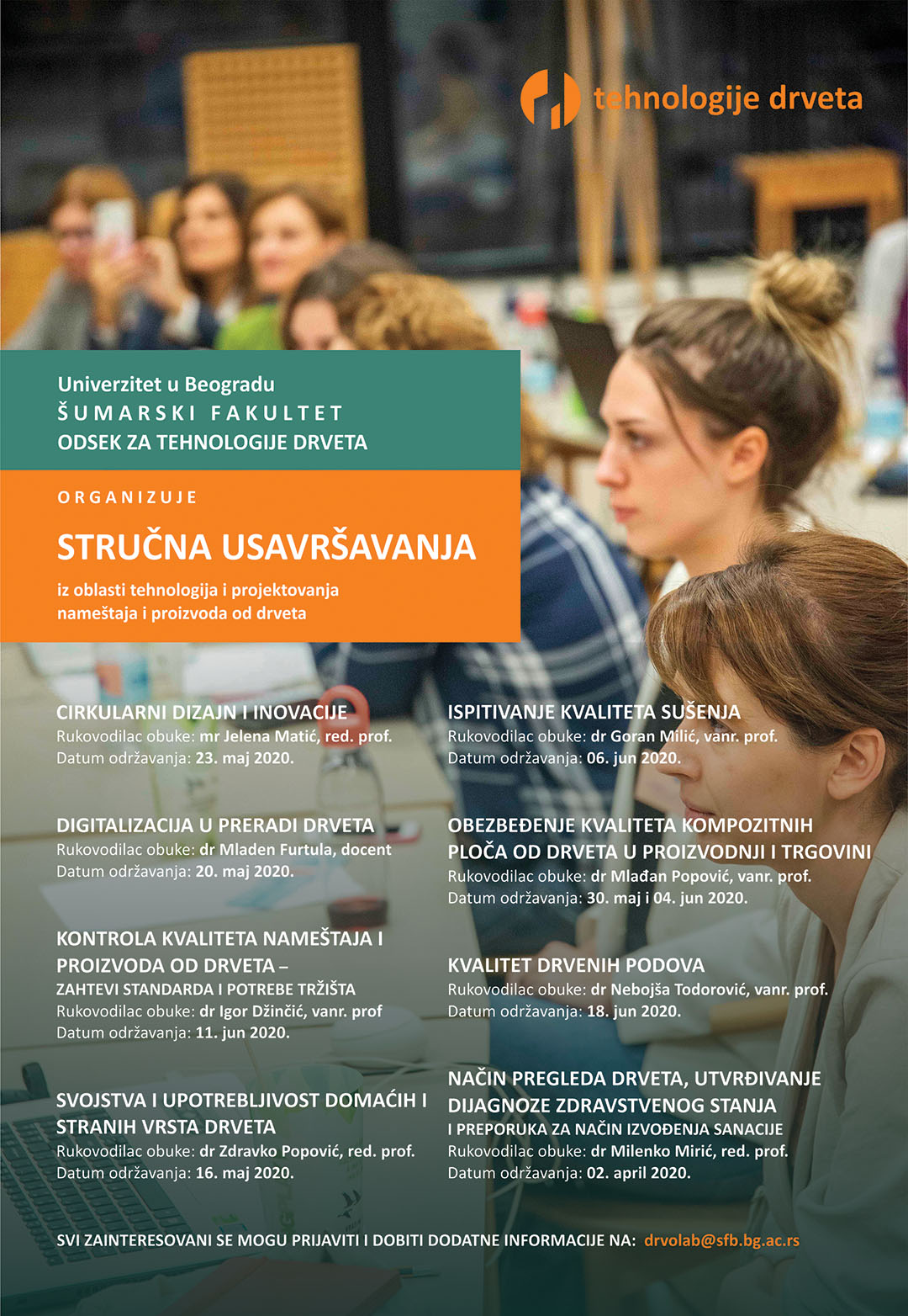 Odsek za tehnologije drveta organizuje: STRUČNA USAVRŠAVANJA