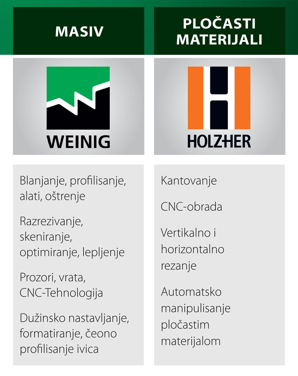 Inovativna vrhunska tehnologija, sveobuhvatne usluge i sistemska rešenja do proizvodne opreme po prinicipu „ključ u ruke“: WEINIG Grupa je Vaš partner kada se radi o profitabilnoj obradi punog drveta i pločastih materijala. WEINIG kvalitet i ekonomičnost daće Vam odlučujuću prednost u odnosu na svetsku konkurenciju, bez obzira da li ste radionica ili industrija.